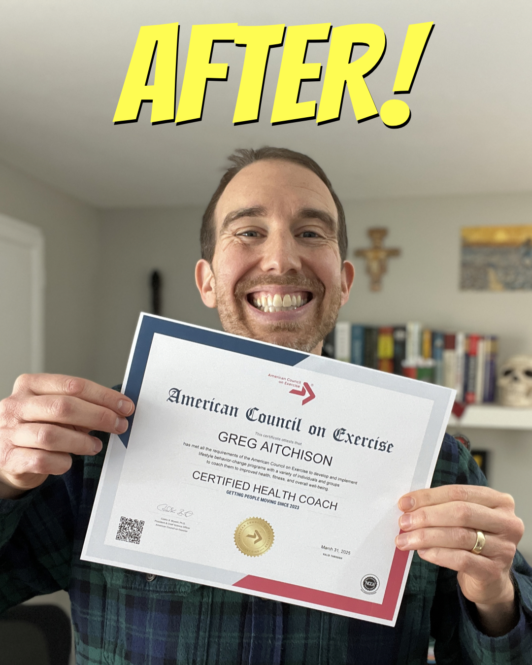 The first picture above is a representation of how I was feeling before sitting down to take my 3 hour, 150 question coaching exam yesterday morning. 😰