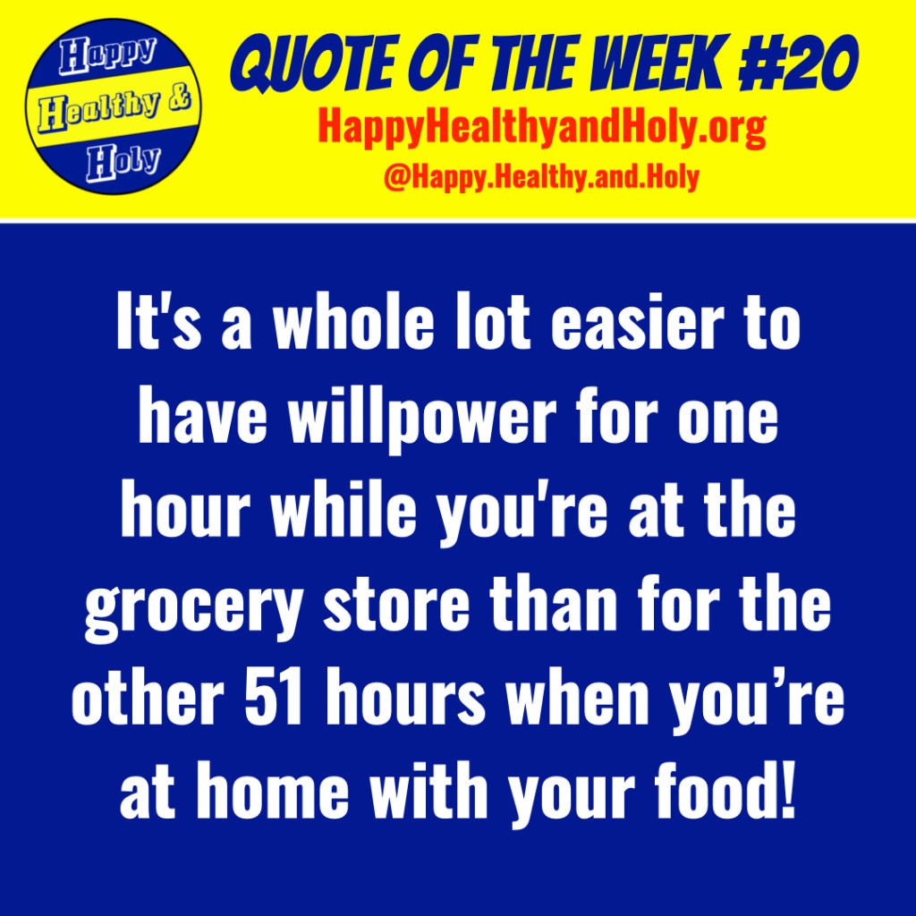 It’s a whole lot easier to have willpower for one hour while you’re at the grocery store than for the other 51 hours when you’re at home with your food!