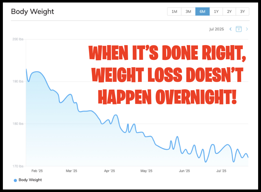 This graph shows one of my amazing clients dropping 20 pounds the RIGHT way – no crash dieting, no extreme workouts, no giving up his favorite foods or drinks… just small changes, consistency over time, and patience. 🙌