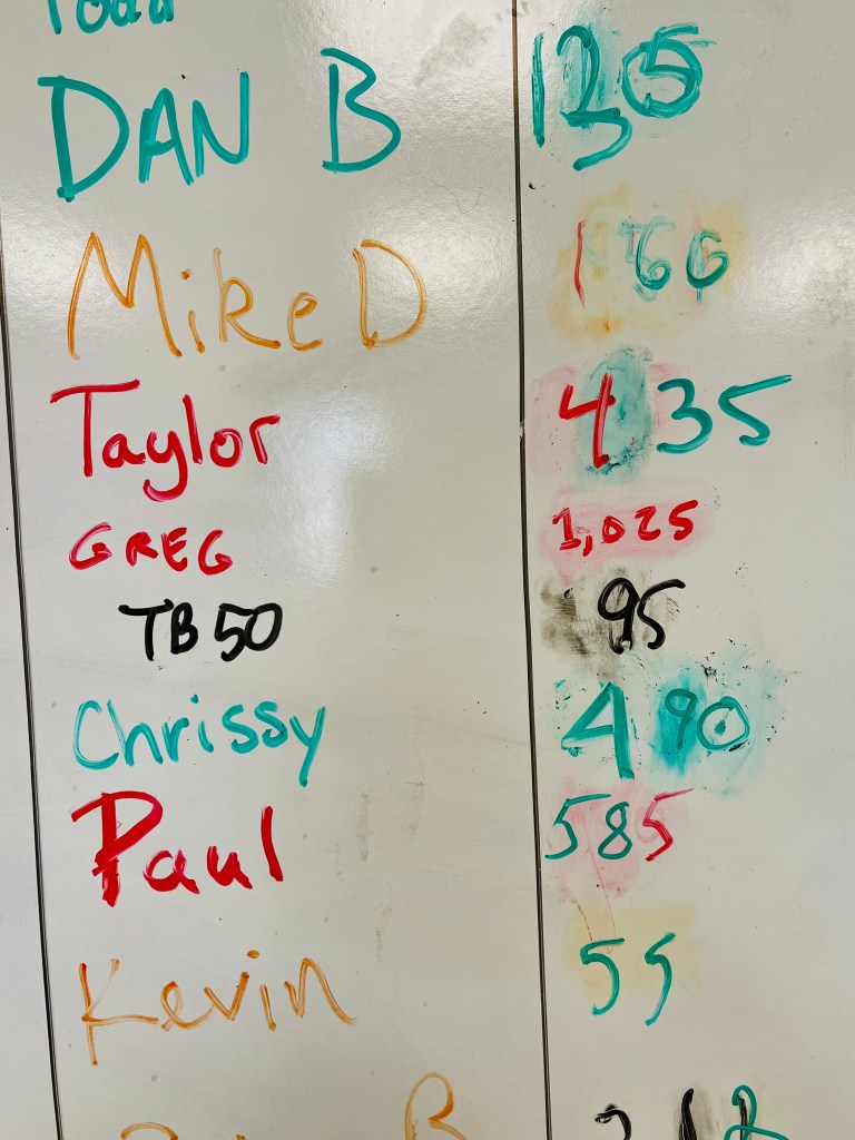 8/25 – 52 pull, 48 chin, 130 push (784 pull, 860 push total)