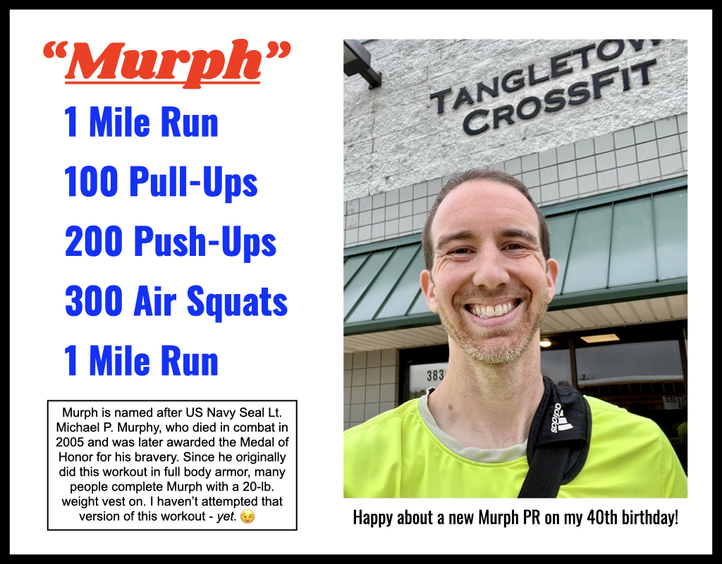 On my 40th birthday I woke up happy, confident, and feeling as fit and strong as ever. At 5:30 that morning I achieved a personal record doing the workout known as “Murph”, walked out of the gym feeling on top of the world, and celebrated the start of my 40th year of life with a stack of my favorite pancakes a few hours later (YUM!).